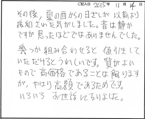 トップページ > 手書きのお客さまの声 > 遮熱対策のご感想 >